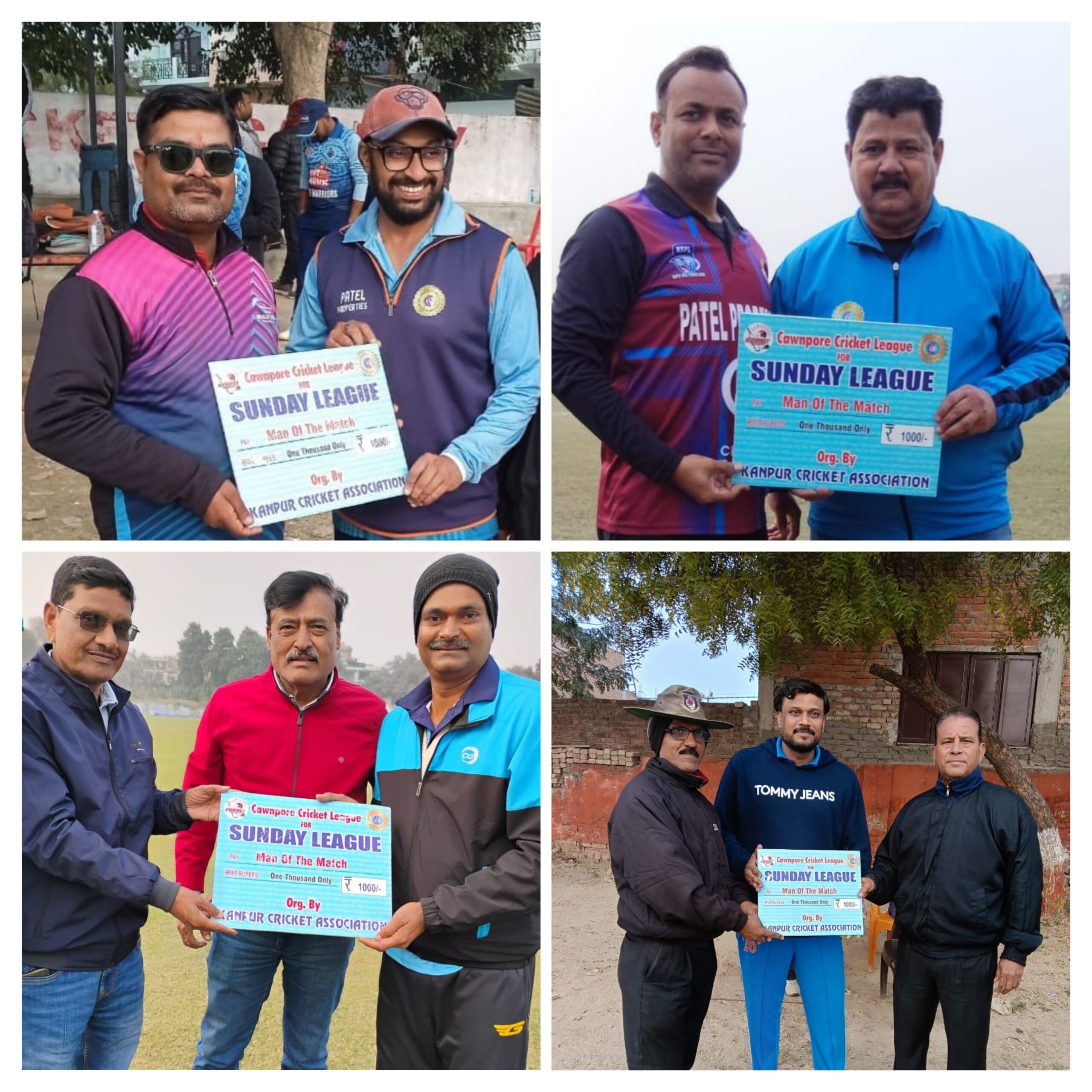 संडे लीग में पटेल प्रॉपर्टीज, मेटाडोर, ब्लू वॉरियर्स और राइजिंग वॉरियर्स की जीत