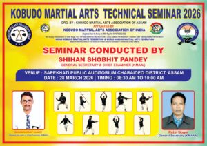 पारंपरिक युद्धकला को बढ़ावा देने और युवाओं में आत्मरक्षा, अनुशासन एवं शारीरिक दक्षता विकसित करने के उद्देश्य से कोबुडो मार्शल आर्ट्स एसोसिएशन ऑफ असम द्वारा “कोबुडो मार्शल आर्ट्स टेक्निकल सेमिनार 2026” का आयोजन किया जा रहा है। यह सेमिनार 28 मार्च 2026 को सुबह 06:30 बजे से 10:00 बजे तक सापेखाती पब्लिक ऑडिटोरियम, चराइदेव जिला, असम में आयोजित होगा।