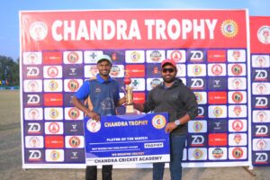 कानपुर चंद्रा क्रिकेट अकादमी मैदान पर स्पार्क क्लब द्वारा आयोजित चंद्रा ट्रॉफी T20 क्रिकेट टूर्नामेंट में आज खेले गए पहले मुकाबले में भारत क्लब ने नेशनल यूथ क्लब को 5 विकेट से पराजित कर शानदार जीत दर्ज की।