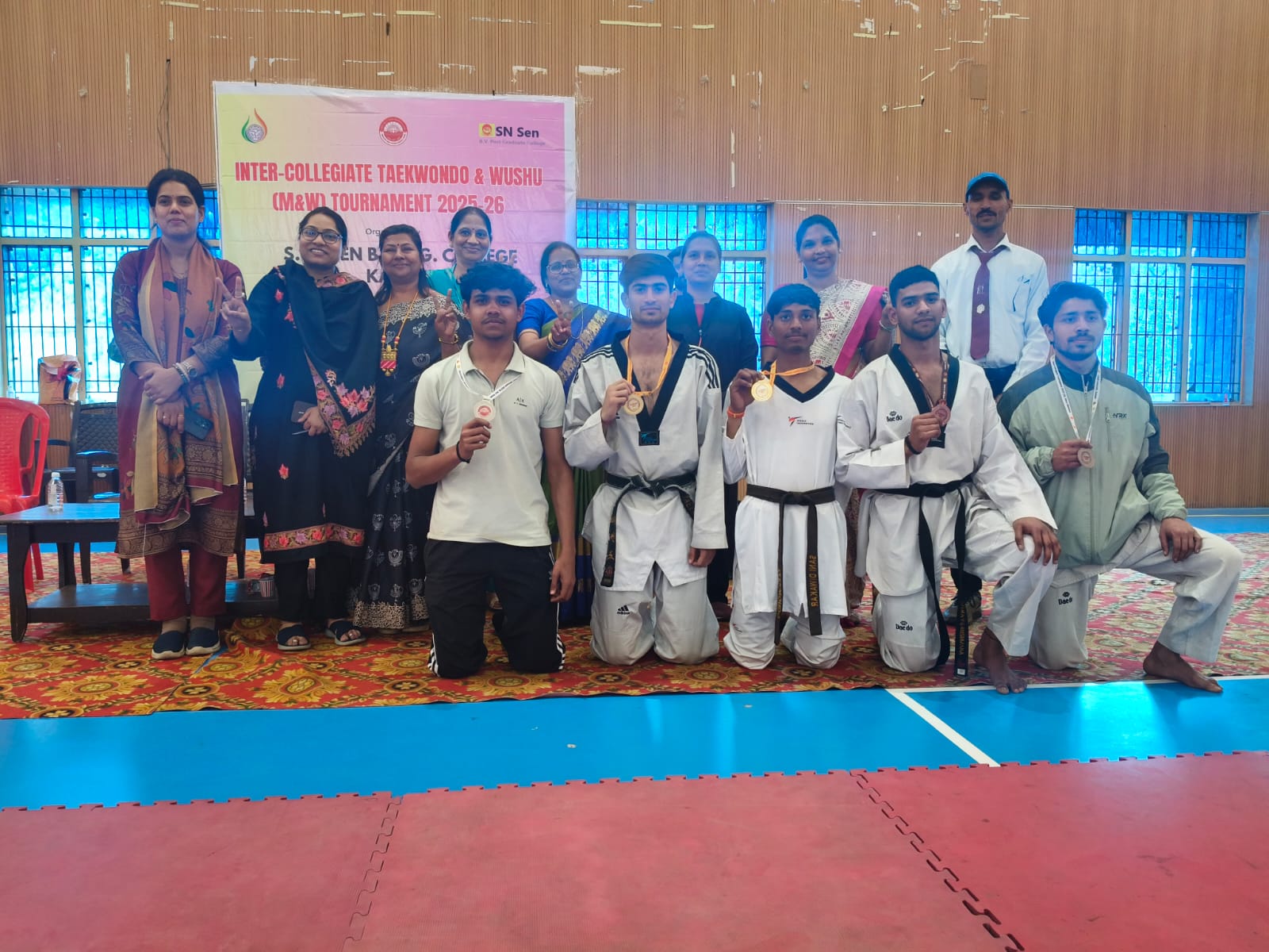 सत्र 2025-26 के अंतर्गत छत्रपति साहू जी महाराज विश्वविद्यालय परिसर में दो दिवसीय अंतर-महाविद्यालयीय ताइक्वांडो एवं वुशू (पुरुष वर्ग) प्रतियोगिता का भव्य आयोजन एस.एन. सेन बीवीपीजी कॉलेज द्वारा किया गया। प्रतियोगिता में विश्वविद्यालय से संबद्ध विभिन्न महाविद्यालयों के लगभग 17 खिलाड़ियों ने उत्साहपूर्वक भाग लेकर शानदार प्रदर्शन किया।