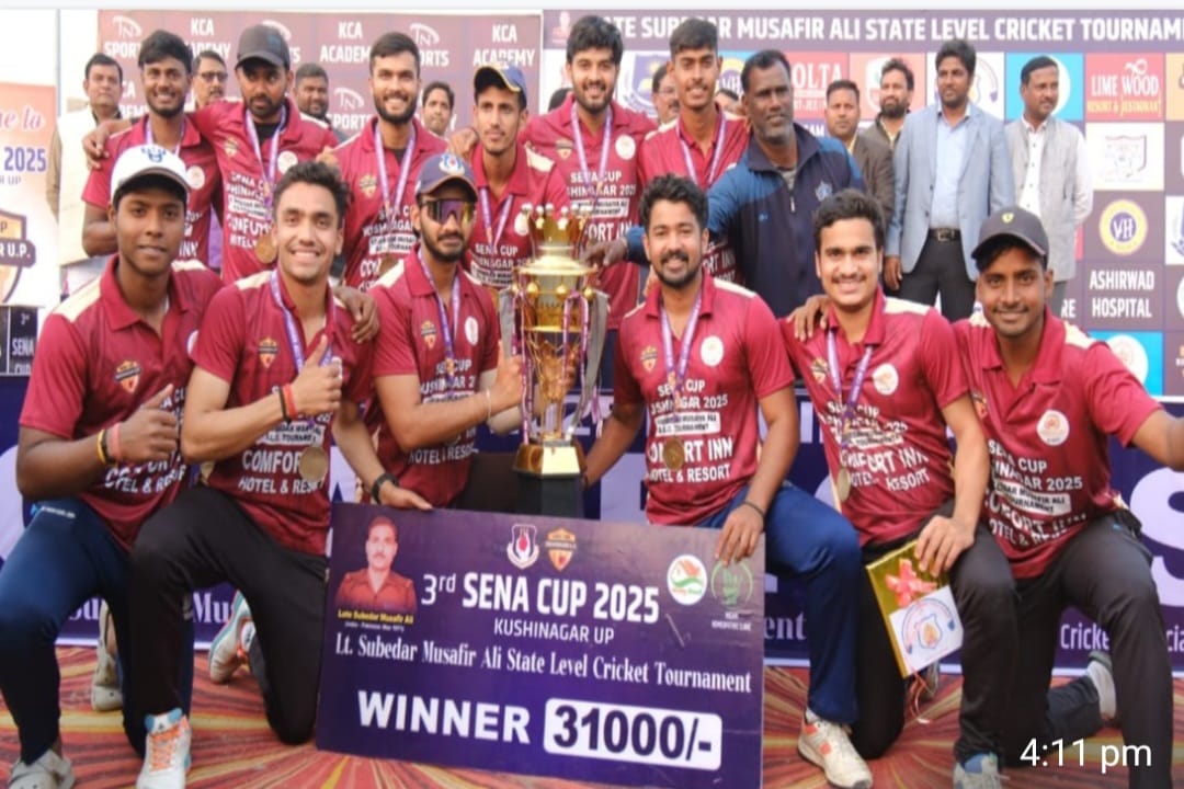 सेना कप राज्य स्तरीय टी-20 क्रिकेट प्रतियोगिता के रोमांचक फाइनल मुकाबले में के.सी.ए. एकादश ने शानदार खेल कौशल का प्रदर्शन करते हुए वाराणसी मंडल को 5 विकेट से मात देकर विजेता बनने का गौरव प्राप्त किया। यह मुकाबला कुशीनगर में खेला गया, जहाँ बल्लेबाज़ों और गेंदबाज़ों ने मिलकर टीम को शानदार जीत दिलाई।