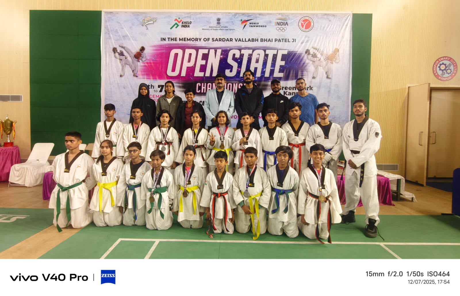 ग्रीन पार्क स्टेडियम, कानपुर में आयोजित ओपन स्टेट ताइक्वांडो चैंपियनशिप 2025 का आज गरिमामय समापन हुआ। राज्यभर के सैकड़ों खिलाड़ियों ने अपनी फुर्ती, तकनीक व अनुशासन से दर्शकों का दिल जीत लिया।