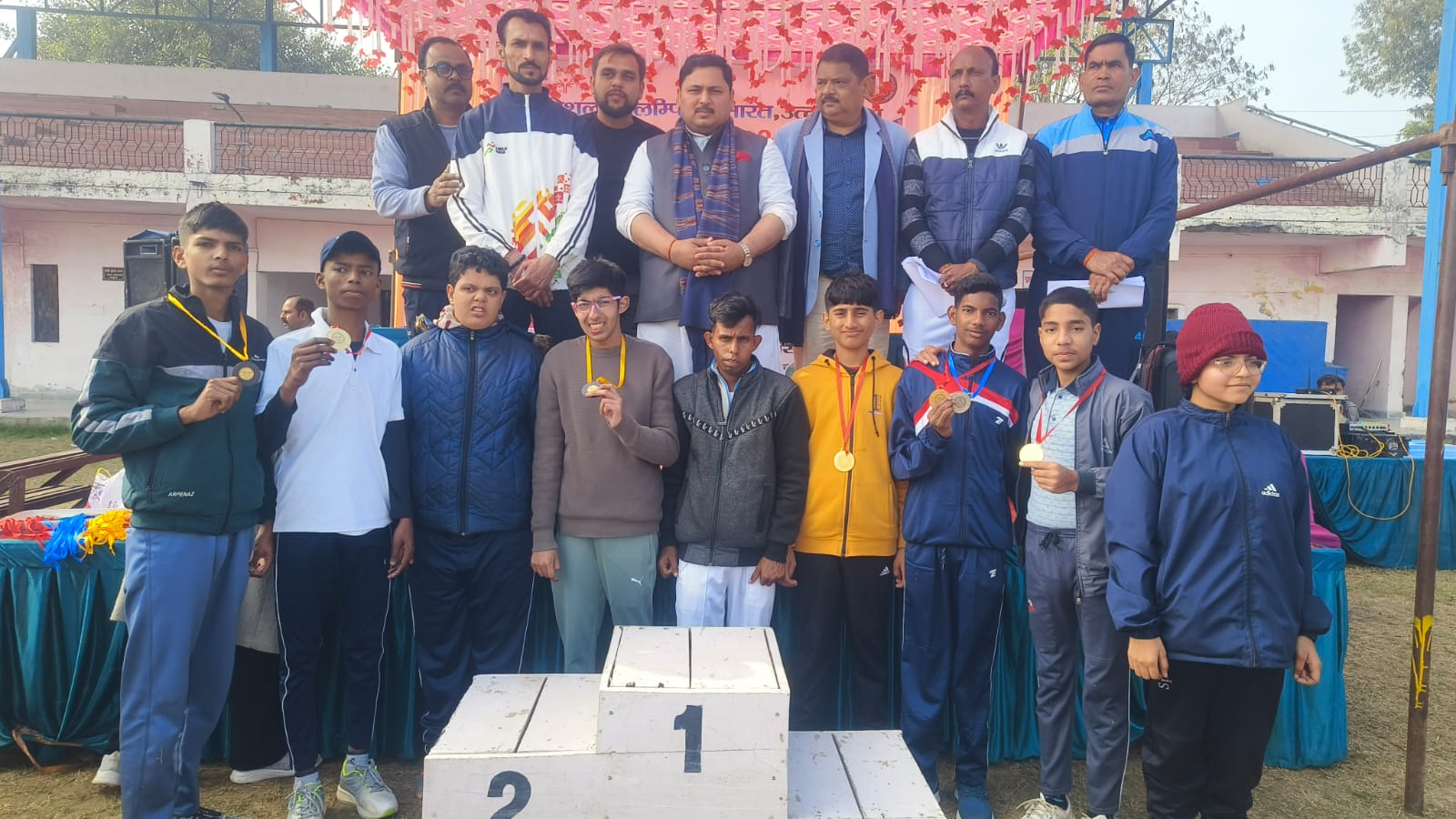 सभी पदक विजेता खिलाड़ियों को स्पेशल ओलंपिक उत्तर प्रदेश के अध्यक्ष श्री मुकेश शुक्ला, एरिया डायरेक्टर श्री संजीव दोहरे, ट्रेनिंग इंचार्ज श्री मनोज सिंह एवं कोऑर्डिनेटर इंद्रपाल द्वारा पदक पहनाकर सम्मानित किया गया।