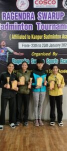 कानपुर बैडमिंटन एसोसिएशन के सहयोग से आयोजित वर्ष 2026 की पहली “प्रथम रागेन्द्र स्वरूप मेमोरियल बैडमिंटन प्रतियोगिता” का तीन दिवसीय रोमांचक मुकाबलों के बाद भव्य समापन हुआ। प्रतियोगिता में कानपुर के 150 से अधिक खिलाड़ियों ने विभिन्न आयु वर्गों में प्रतिभाग कर अपनी प्रतिभा का शानदार प्रदर्शन किया। खिलाड़ियों की बेहतरीन फिटनेस, तकनीकी कौशल और संघर्षपूर्ण खेल ने दर्शकों को खूब रोमांचित किया।