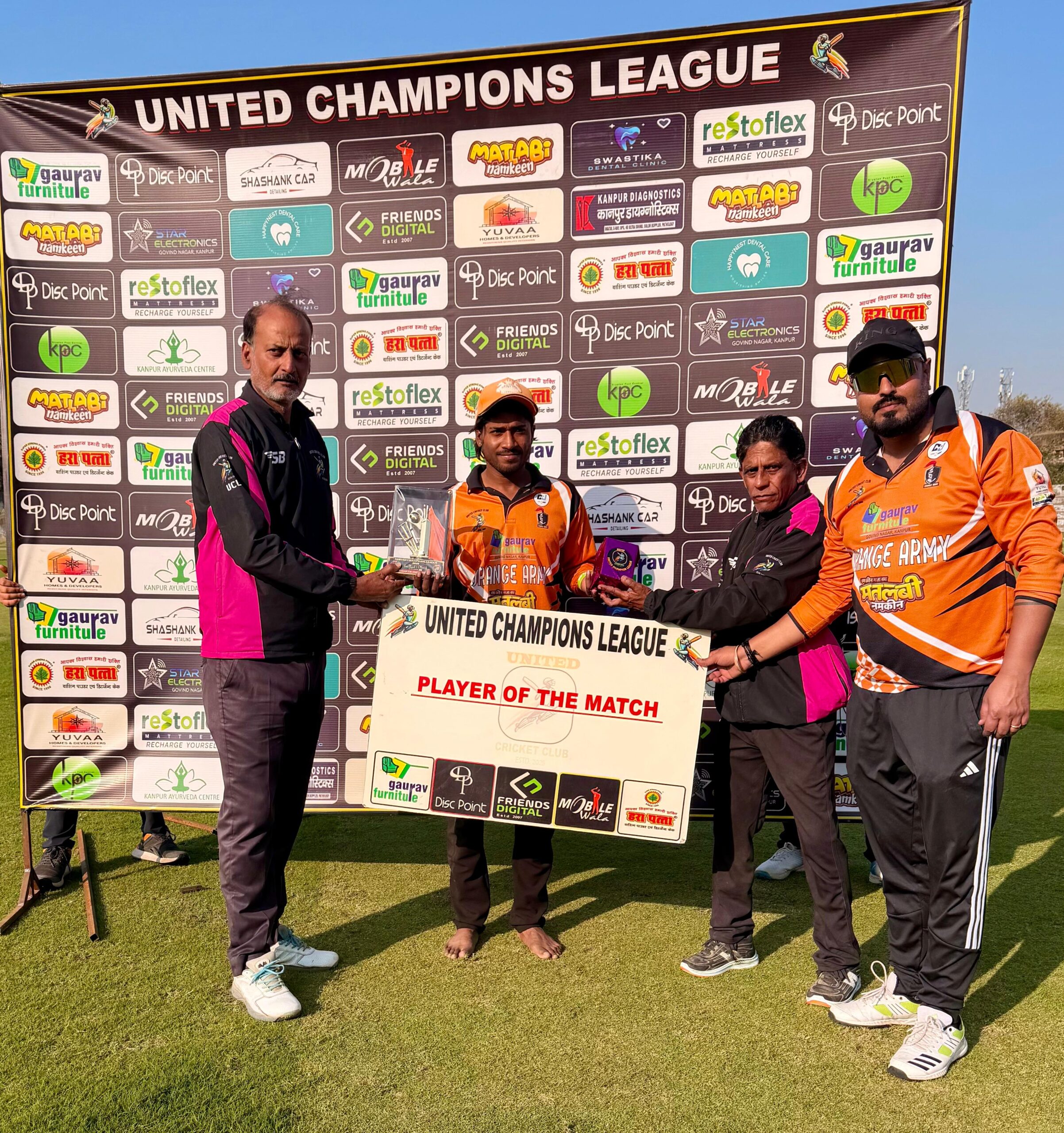 Kanpur United Champions League के दूसरे क्वालीफायर मुकाबले में Orange Army ने दमदार प्रदर्शन करते हुए Mighty Mavericks को 40 रनों से पराजित कर फाइनल में शान से प्रवेश कर लिया। मुकाबला कमला क्लब मैदान पर खेला गया।