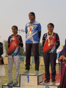 इंडियन राउंड (बालिका वर्ग) में रतनम दीक्षित ने 720 में से 680 अंक अर्जित करते हुए 3 सिल्वर मेडल जीते।