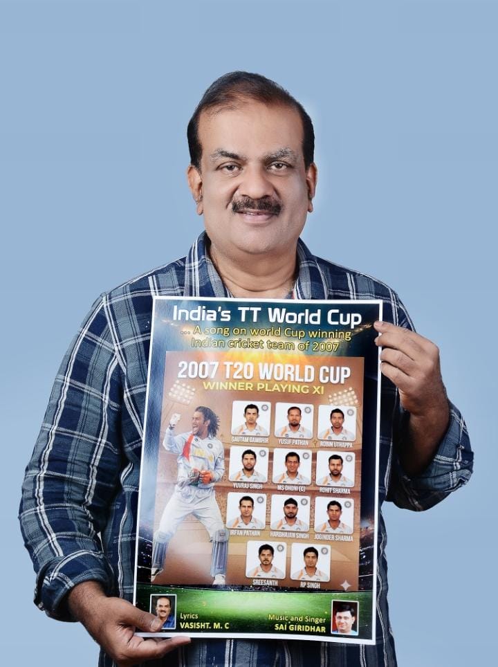 इसी गौरवशाली उपलब्धि को समर्पित करते हुए केरल के क्रिकेट इतिहासकार प्रो. वशिष्ठ ने भारतीय टीम की 2007 विश्व कप विजय पर एक विशेष गीत की रचना की है। इस गीत में उस ऐतिहासिक क्षण, खिलाड़ियों के जज्बे और देशभर में फैले उत्साह का भावपूर्ण वर्णन किया गया है।