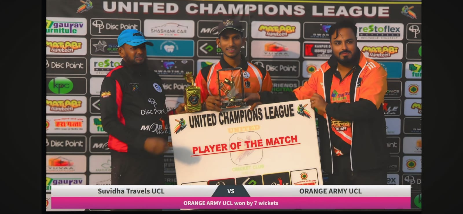 यूनाइटेड चैंपियंस लीग (UCL) के लीग मुकाबलों के अंतर्गत 13 दिसंबर 2025 को एवरेस्ट क्रिकेट ग्राउंड, कानपुर में खेले गए मैच में ऑरेंज आर्मी UCL ने शानदार प्रदर्शन करते हुए सुविधा ट्रेवल्स UCL को 7 विकेट से पराजित किया।